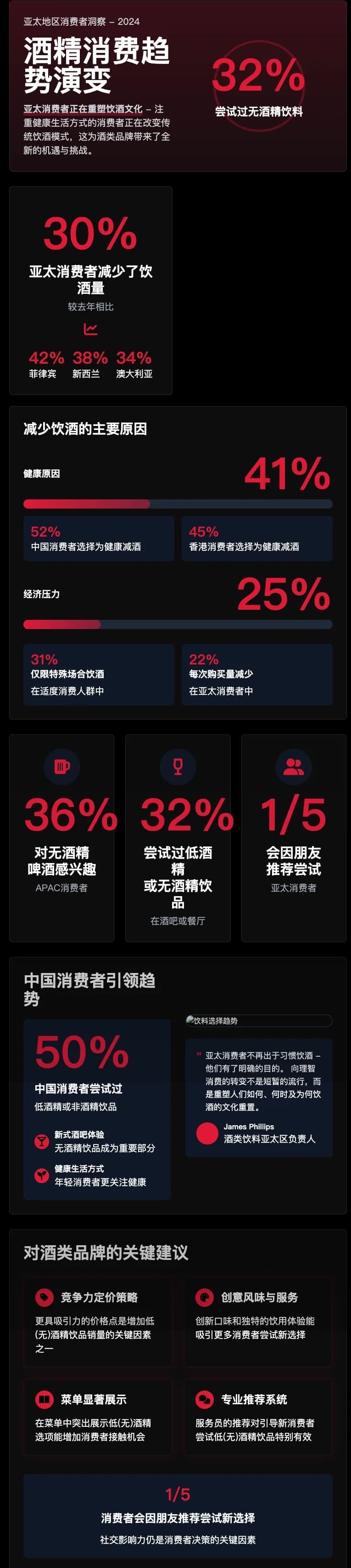 随着消费者对健康和经济的双重考量,无酒精和低酒精饮料正在成为亚太地区的新主流。品牌和场所需要抓住这个机遇,提供更健康、更经济的选择,才能在未来的市场中保持竞争力。